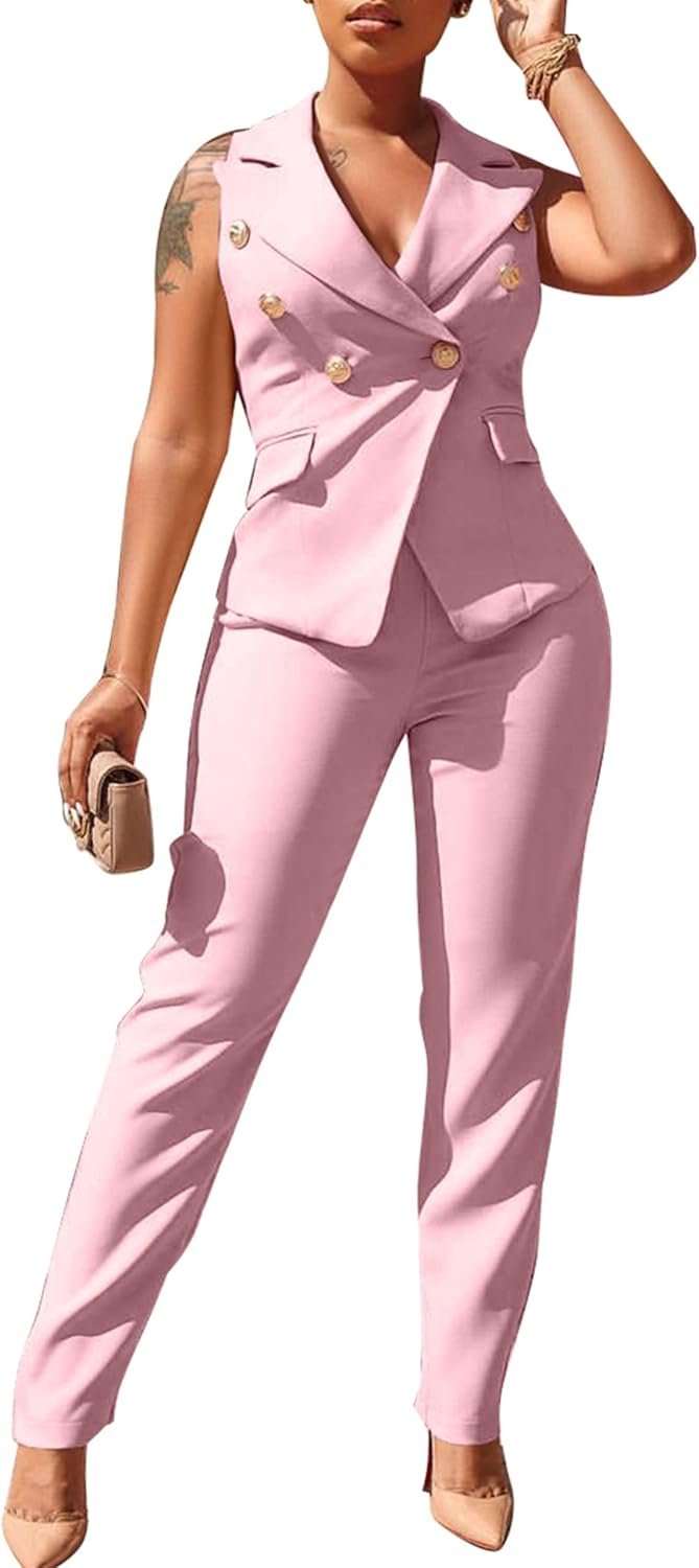 Design:Women’s Business Blazer Suit Ruffles Sleeveless Two Piece Solid Work Pant Suit Business Office Lady Suits Sets.Bodycon work slacks hugs your buttock to show your body curve, solid color blazer set suit more classic, fashionable and not dull. A must have piece in your wardrobe.